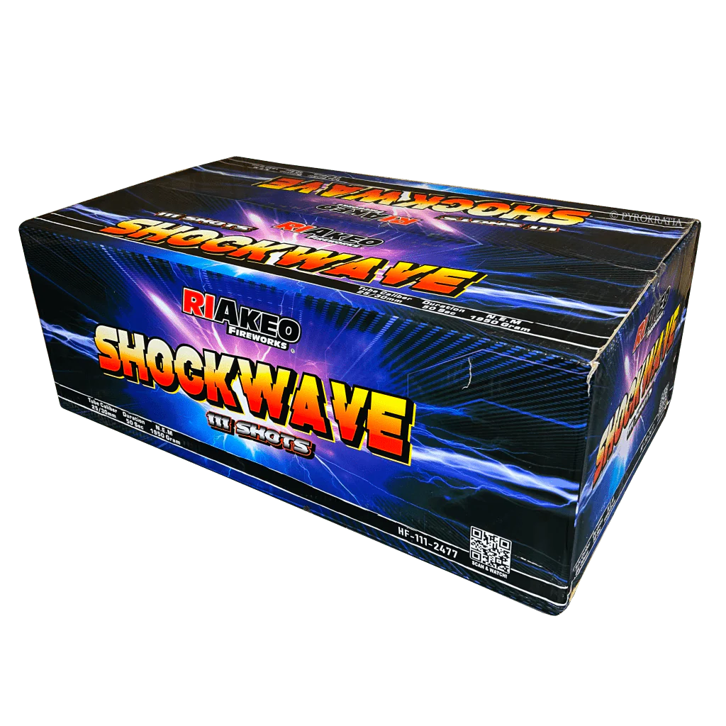 New for 2025 Riakeo Shockwave offers an impressive display of 110 shots in just 50 seconds. This F3 compound cake is packed with 1950g of pyro powder and a huge array of colours. With a mixture of fanned and straight shots, this firework gives you the ultimate professional feel. Shockwave is the perfect stand-alone firework or display piece.